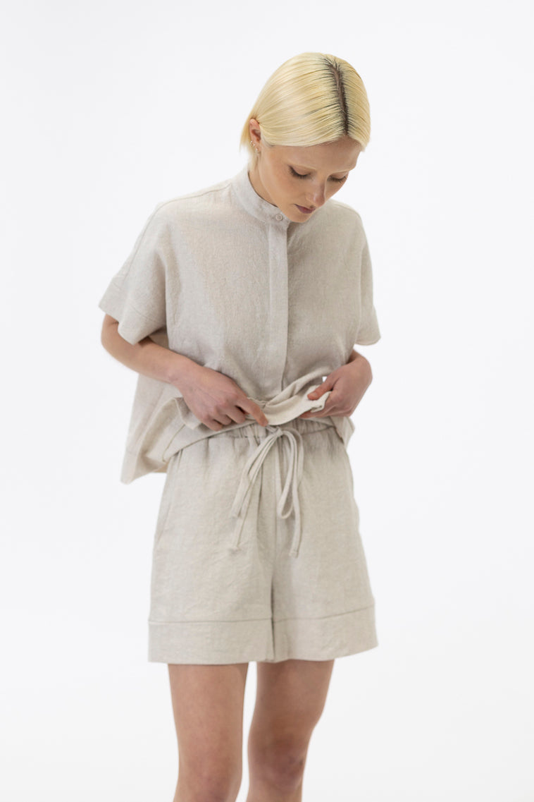 Fabric: Our Organic cotton/linen fabric is Oeko-Tex certified and woven in a mill run on green energy. It is produced in small batches in Eastern Europe where there is a strong heritage of spinning and weaving linen fabric.