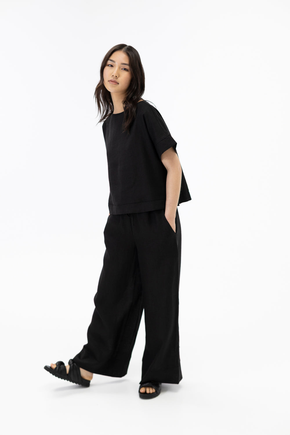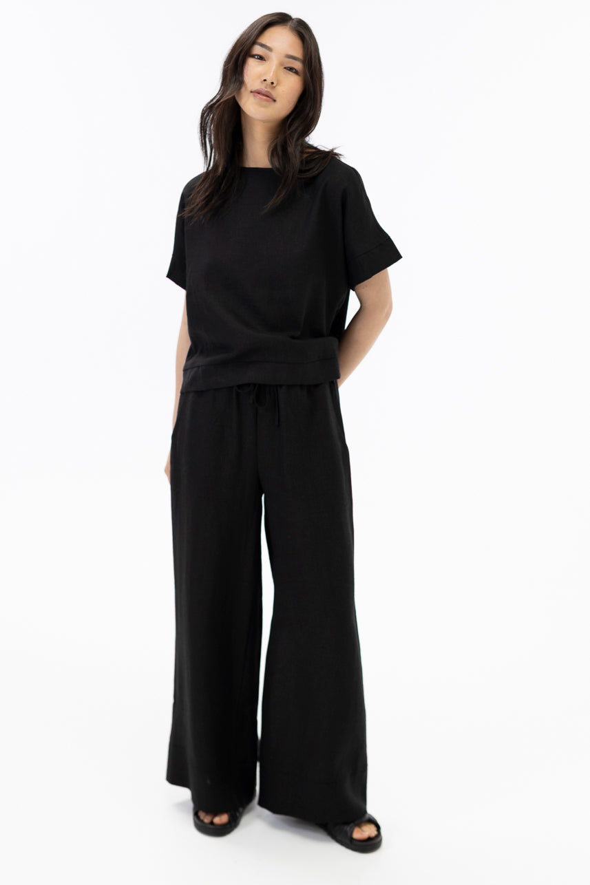 Wide leg full length pants / Black